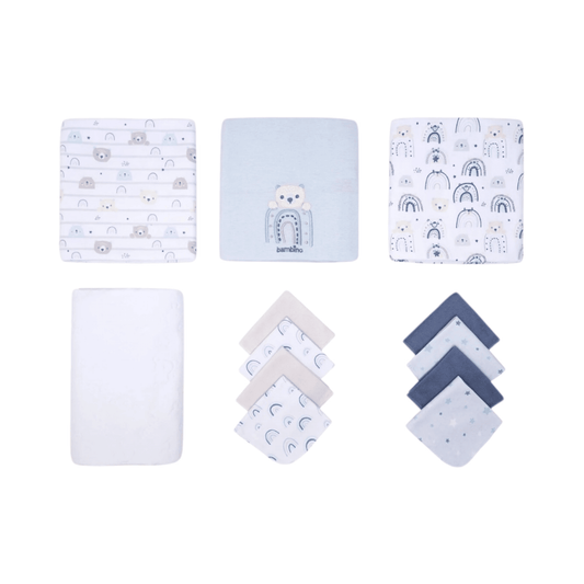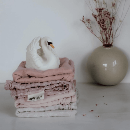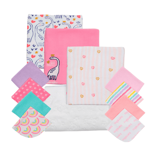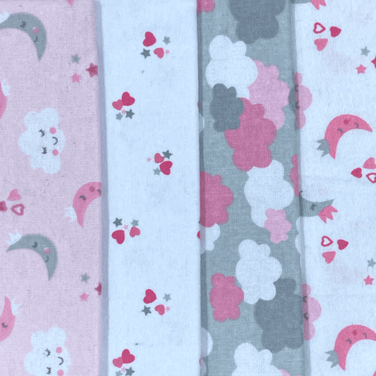 Set de 4 mantitas afraneladas, Nubecitas rosa