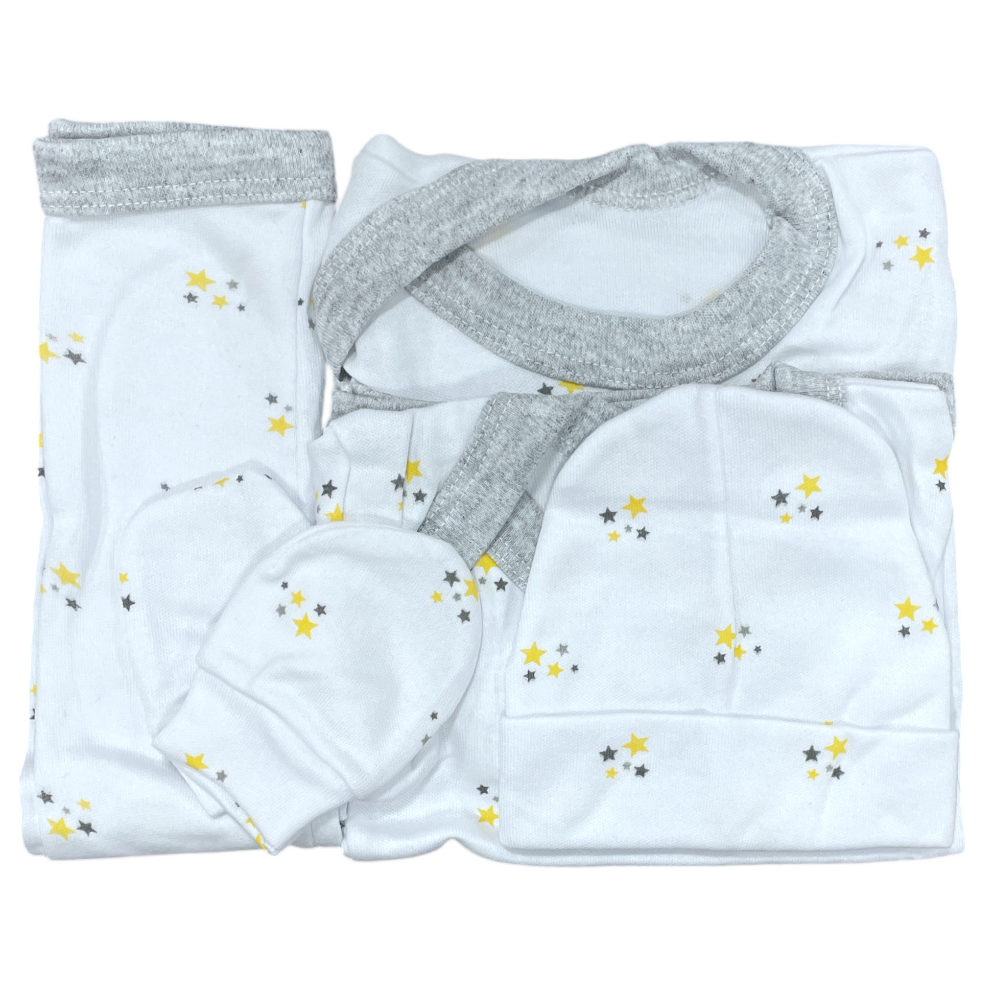 1panty, 1 camiseta, 1 body, 1 gorro, 1 par de mitones.