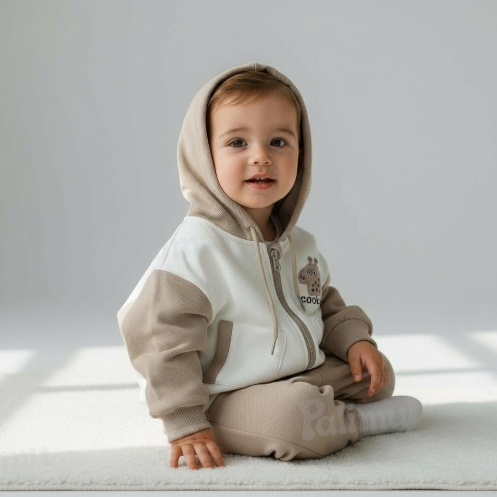 Este buzo de algodón beige oversize para niños es suave y cómodo, ideal para los más pequeños. Cuenta con un gorro adorable que tiene orejitas de jirafa, perfecto para hacer que los días fríos sean más divertidos y acogedores. Su diseño amplio permite libertad de movimiento para que los bebés jueguen y exploren sin restricciones.